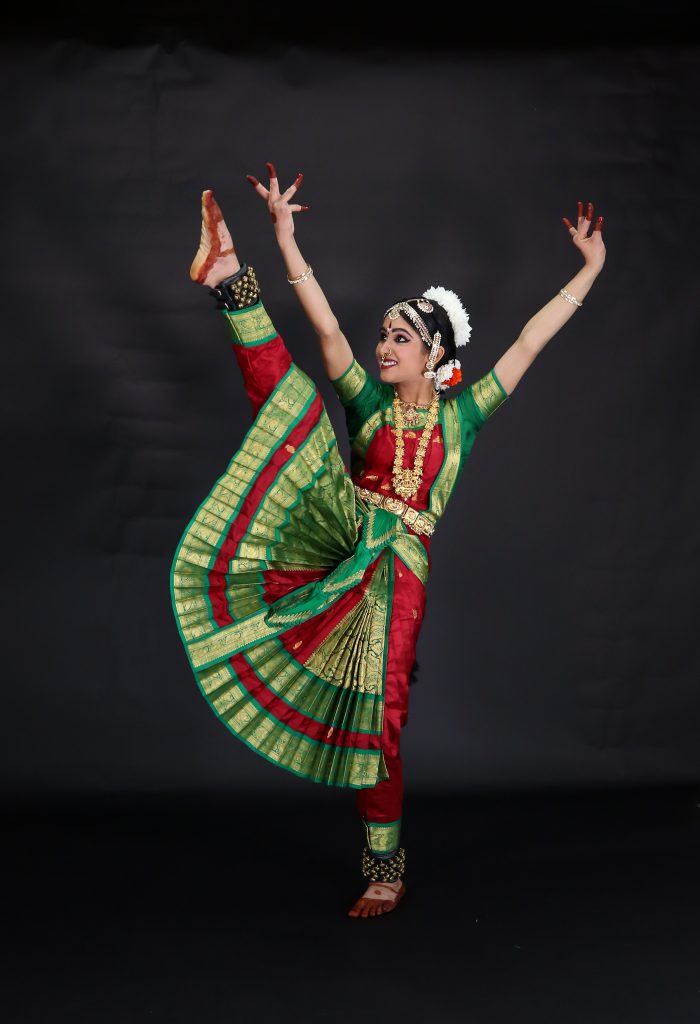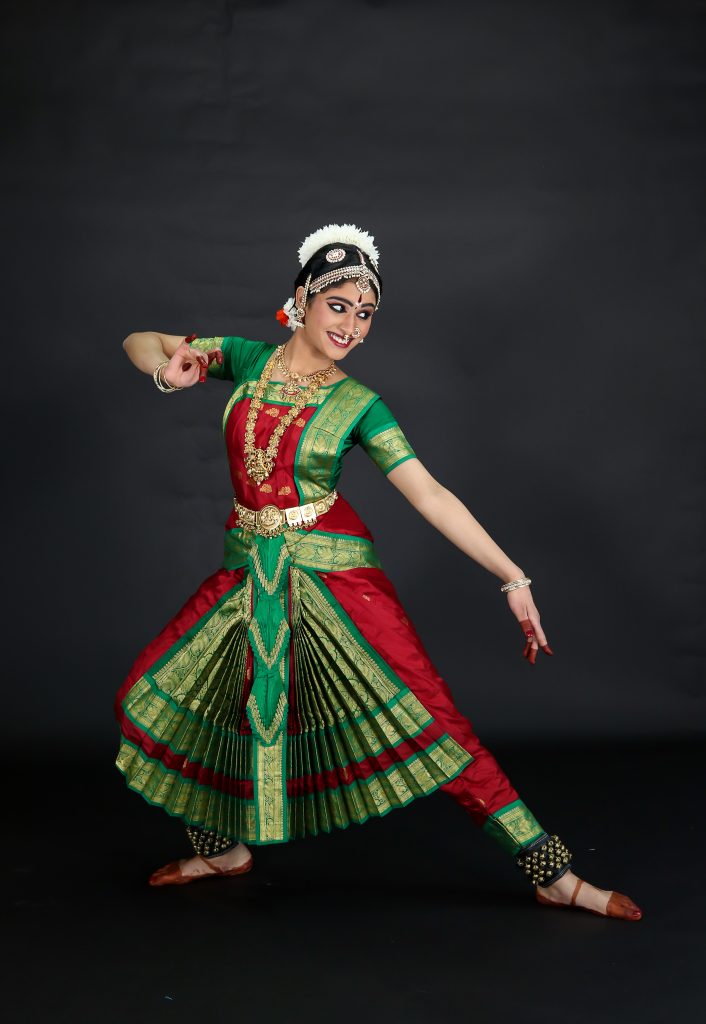 Jatiswaram: This is a dance with rhythm and grace expressed through intricate and energetic steps. Jatiswaram is a dance attuned to the notes of a pure Carnatic composition.This style of dance highlights the structure and groupings of Jatis. The song is composed of swaras in a melodious raga and is devoid of lyrics. The rendering of the swaras adds beauty and harmony to the dance moves. This is an abstract dance without abhinaya and it brings out the nritta element of Bharatanatyam.